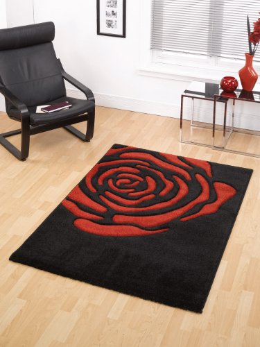 XLarge Modern Quality Thick Black & Red Colour Rug Rose Design Carpet 160 x 220 cm (5'3" x 7'3") Product Description